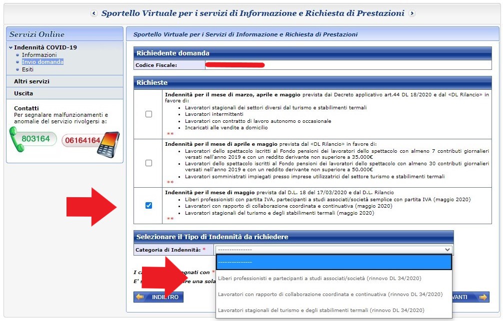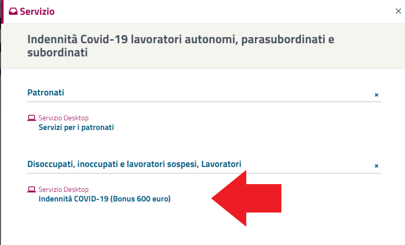 Selezionare “Indennità Covid-19 (Bonus 600 euro)”