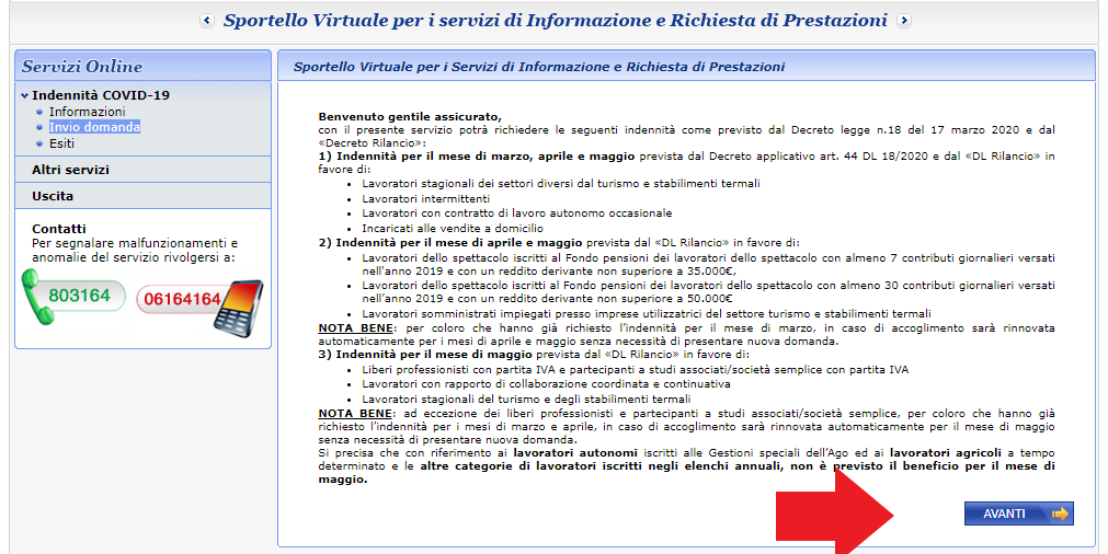 Cercare la parola Covid e selezionare “Indennità Covid-19 lavoratori autonomi, parasubordinati, “