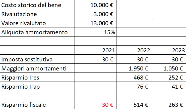 A fronte di un costo per imposta sostitutiva del 3% (con uscite finanziarie pari all’1% a giugno 2021, a giugno 2022 e a giugno 2023), la società potrà recuperare (ad aliquote Ires e Irap vigenti) il 27,9%, con un beneficio netto di quasi il 25%