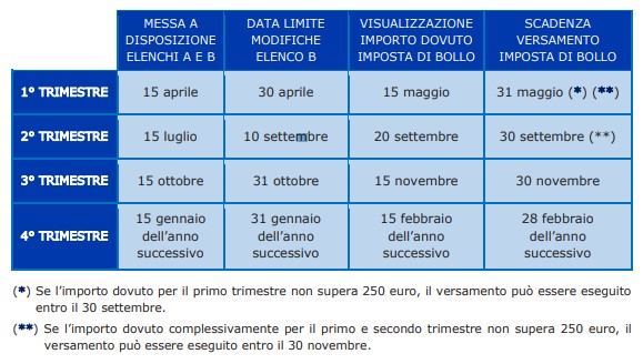 Visualizzazione dell’imposta di bollo dovuta e versamento