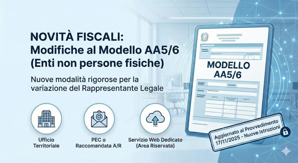 Il Provvedimento dell’Agenzia delle Entrate del 17/11/2025 n. 491453 introduce importanti modifiche operative al modello AA5/6, utilizzato dagli enti diversi dalle persone fisiche – come gli Enti del Terzo Settore (ETS) che non hanno partita IVA – per: